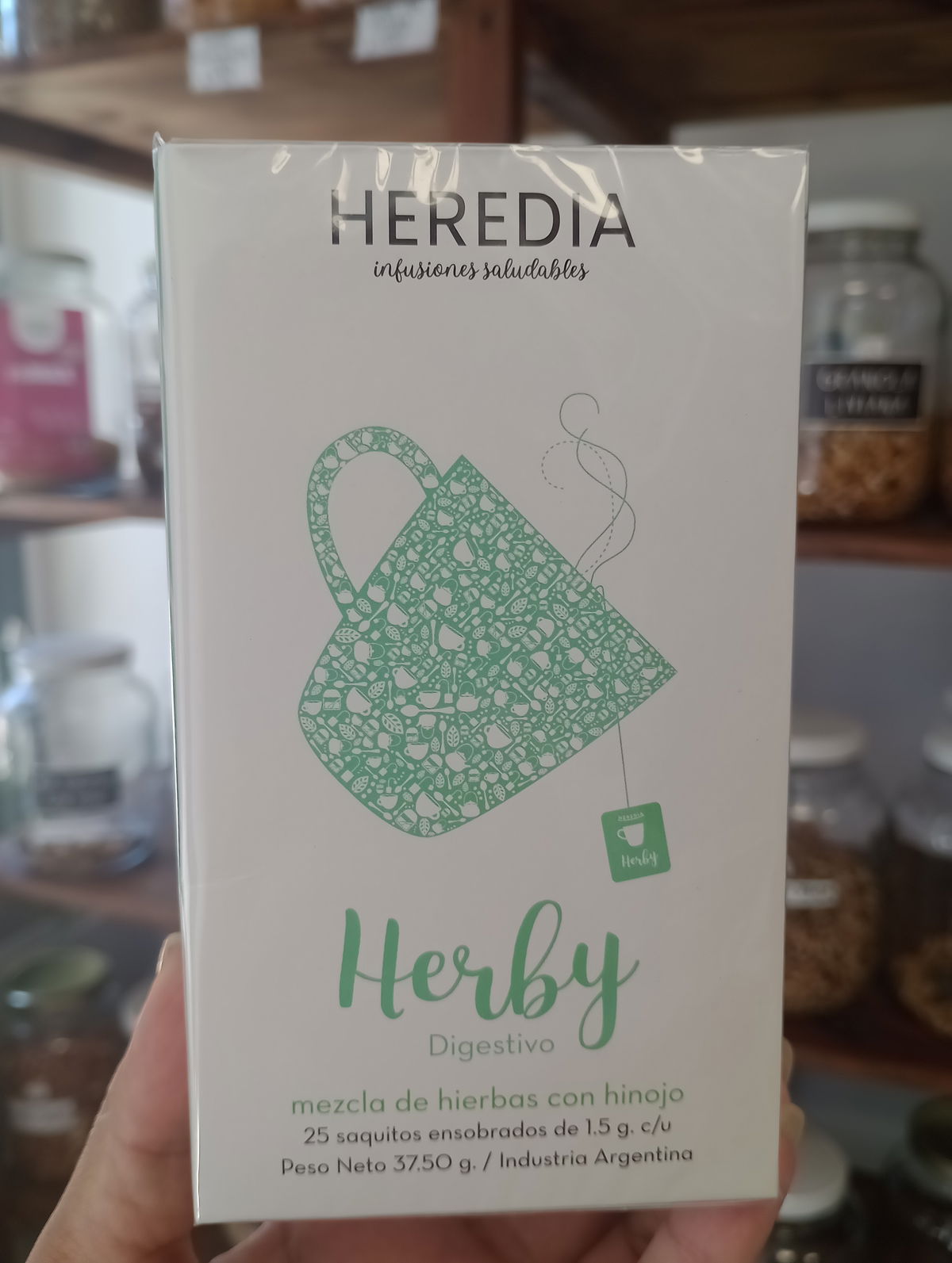 Ingredientes: cedrón, hinojo, peperina, manzanilla, poleo • 25 saquitos ensobrados