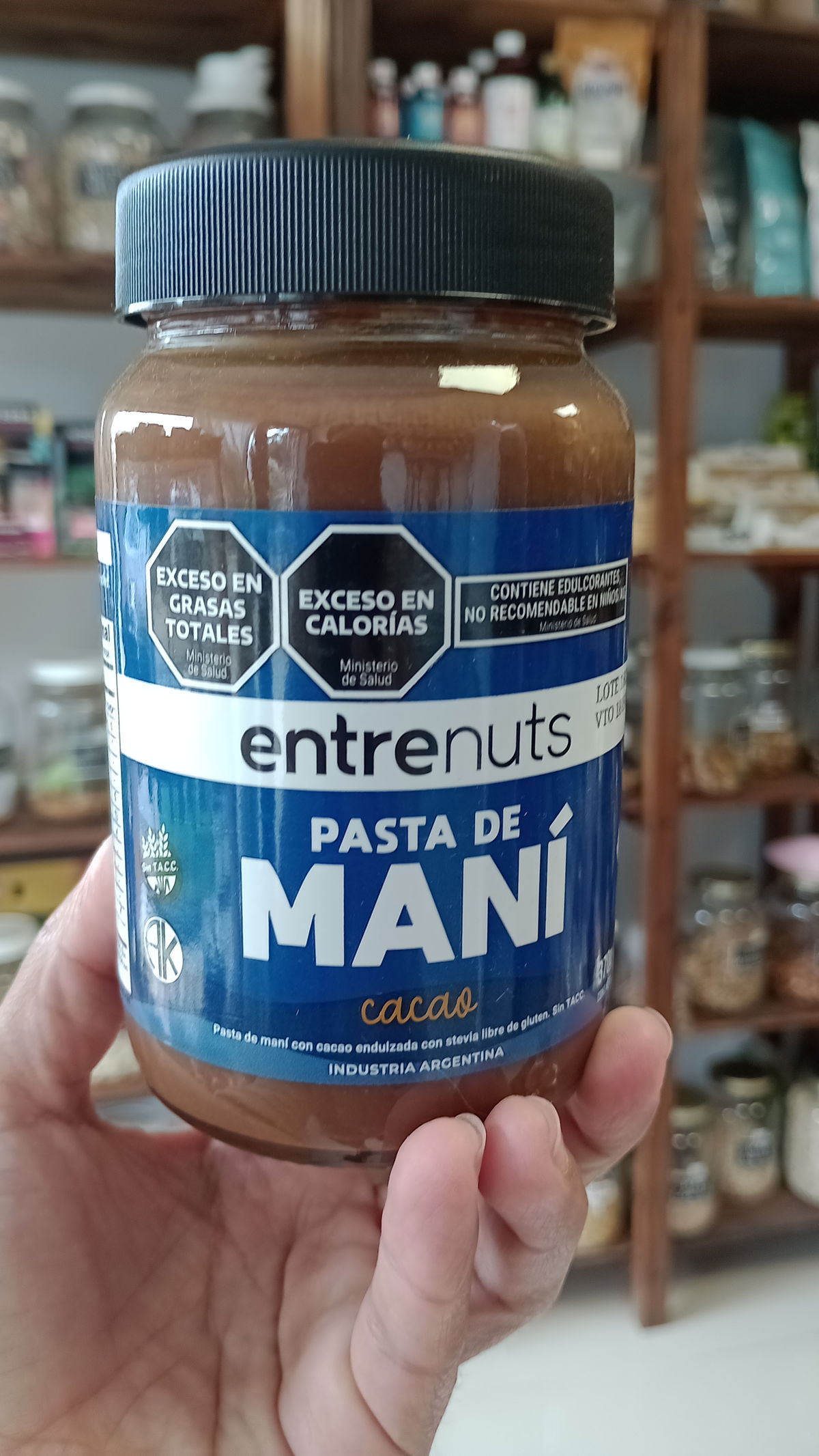 Pasta de maní cacao "Entre Nuts" Sin TACC
